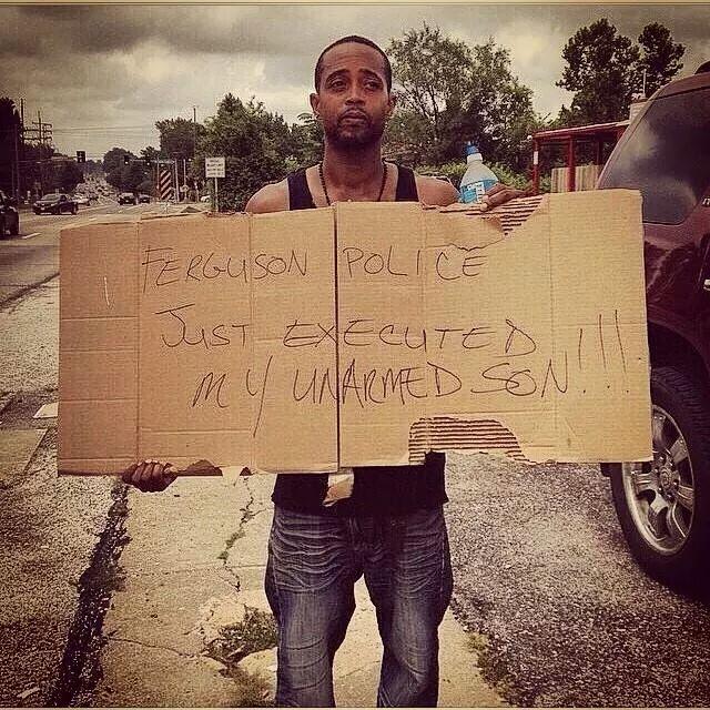 Daughter, I said I didn’t have it in me to sit with the murder of Michael Brown last night and comb my social media accounts for first-hand anecdotes that would likely be more accurate than anything the news stations would report. I didn’t want to watch the Vines or read the Instagram messages under a photo collage of police presence at the crime scene, wailing friends and neighbors, the boy’s father holding up a scrap of cardboard scrawled with, “Ferguson Police just executed my unarmed son,” and the barely covered body of the boy himself.